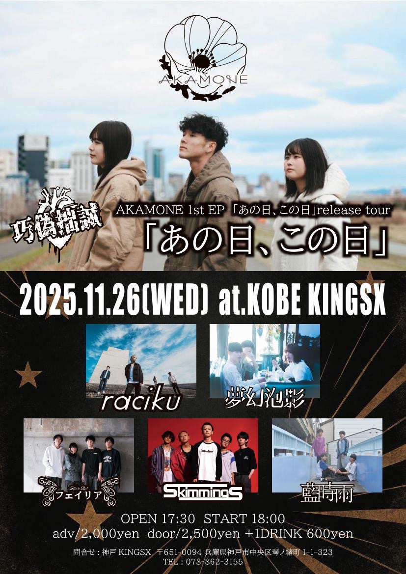 2025.12.26(Wed) 神戸KINGX SCHEDULE コピー 2025.09.20 「あの日、この日」 OPEN 17:30 / START 18:00 TICKET : ADV ¥2,000- / DOOR ¥2,500- (+1D ¥600) ツアー専用予約フォームはこちら