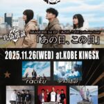 LIVE コピー 2024.08.212024.12.07 2025.12.26(Wed) 神戸KINGX2025.11.10(Mon) 福岡OP’S2025.10.25(Sat) 大阪 堺Tick-Tuck2025.10.20(Mon) TOYONAKA LIP2nd2025.9.30(Tue) 梅田Zeela2025.10.30(Thu) アメリカ村2025.12.6(Sat) 下北沢21会場2025.10.13(Mon)2025.10.16(Thu) ESAKA MUSE2025.9.27(Sat) 大阪城音楽堂